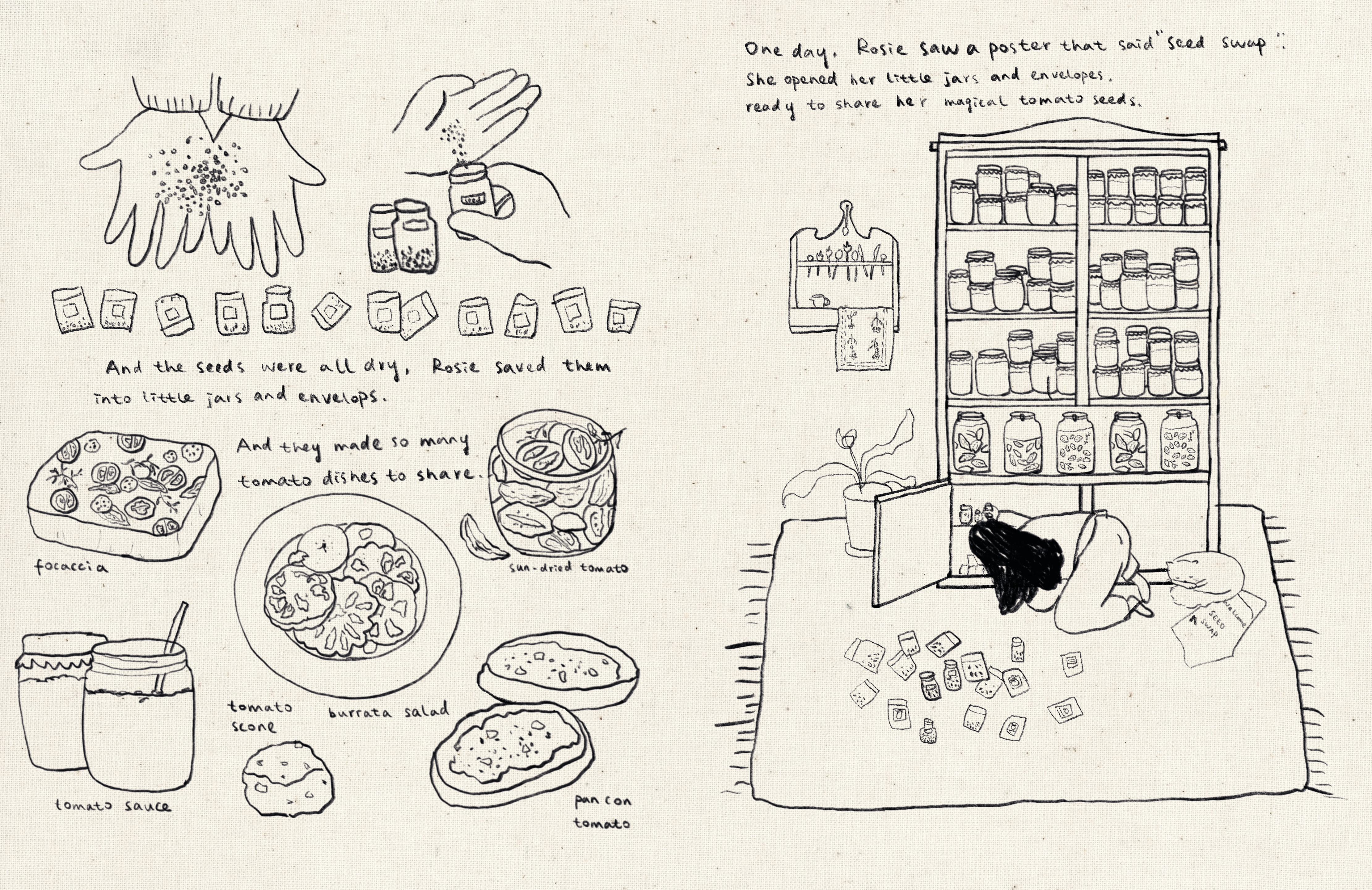 The story begins with a single sprouting tomato, and from that tiny moment, it grows into a gentle journey about seeds, growth, and all the surprising stories a plant can carry.